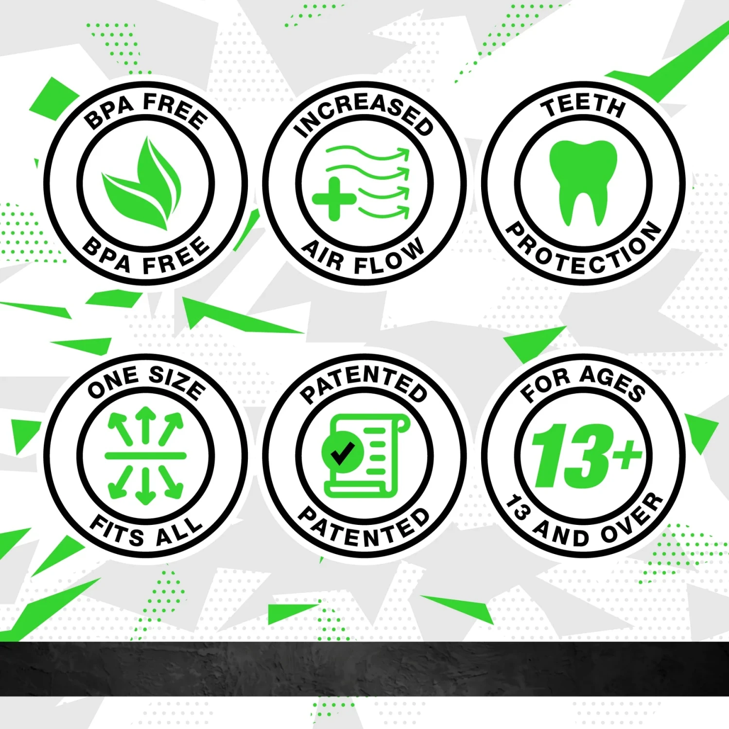 Immer mehr Sportler im Fitnessstudio tragen einen Mundschutz, aus gutem Grund. Beim Heben wird fast überall im Körper Spannung aufgebaut, auch im Kiefer. Das kann auch bedeuten, dass die Zähne durch das Zusammenbeißen stark belastet werden. Mit einem Mundstück lässt sich diese Spannung nutzen, um die Leistung beim Kraftsport zu steigern, und es entlastet auch die Zähne. Dieses Mundstück wurde entwickelt, um 6 Dimensionen des Kiefers sofort zu stabilisieren: Anterior & Posterior, Protrusion, Lateral, Neigungs-, Gleit- und Rollbewegungen. DS steht für Dimensionaler Stabilisator und verbessert die Leistung des Körpers top-down. Mit seinen extra hochgezogenen Seiten bietet das 6DS Heavy Lifting Mundstück maximale Stabilität.