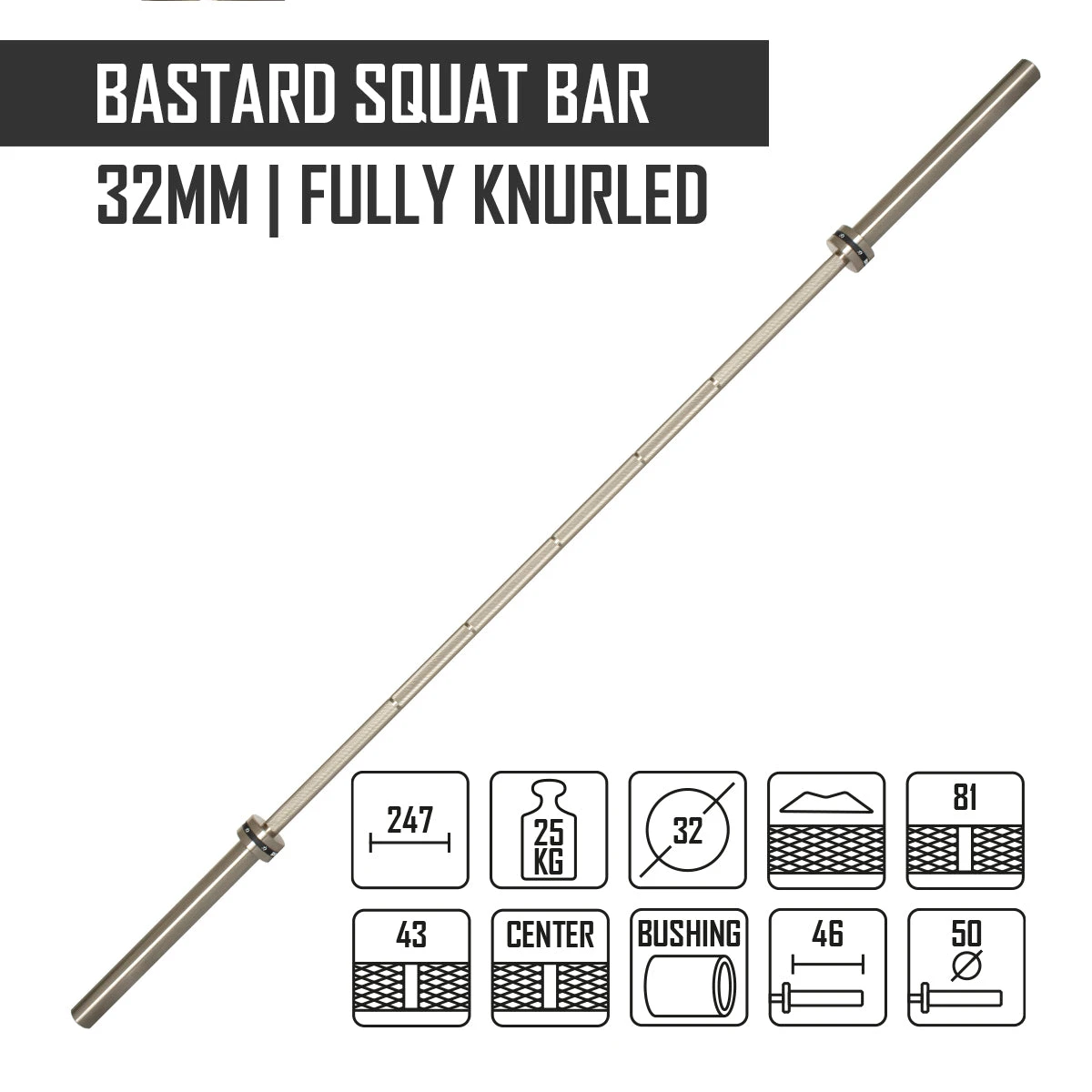 Strengthshop Bastard Squat Bar mit Chromeschaft – Durchgehende Rändelung