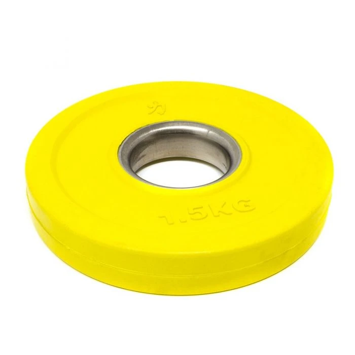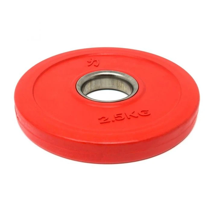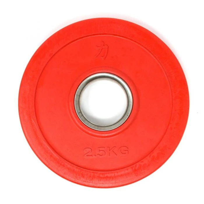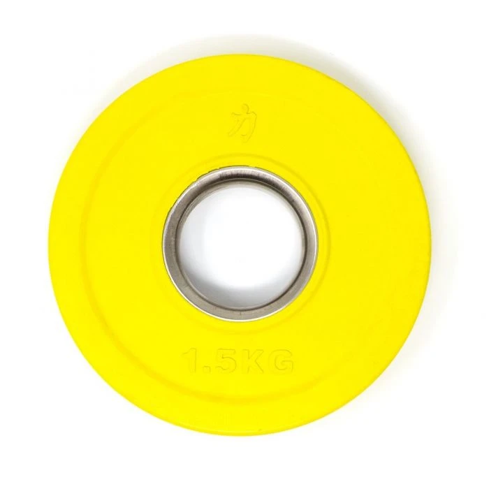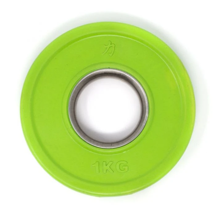 Der Stahlring der Hantelaufnahme macht das Laden zu einer reibungslosen Sache. Diese Scheiben sind ideal für olympische Langhanteln mit einer Scheibenaufnahme von 50mm geeignet und entsprechen den IWF/BVDG-Richtlinien. Steigerungen, wie im olympischen Gewichtheben üblich, ab mindestens 1kg (2×0,5kg) bis hin zu den „kleinen Roten“ von je 2,5kg sind mit dem Set abgedeckt. Diese kleinen Hantelscheiben, häufig auch fractional plates oder auch change plates genannt, haben in diesem Set ein Gesamtgewicht von 15kg.