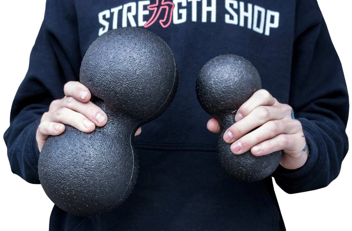 Das Peanut Massage Tool ist eine Variation des Foam Rollers. Die Doppelkugelrolle lässt sich bequem liegend verwenden. Ideal, um verspannte Muskeln vor einer Trainingseinheit zu lockern und die Durchblutung zu fördern. Mit dieser Selbstmassage kann die Flexibilität gesteigert und damit der Bewegungsradius verbessert werden. Die spezifische Form wurde für die Wirbelsäule entwickelt, lässt sich aber auch für andere Körperregionen verwenden, z. B. an den Waden oder Armen. Die beiden Kugeln haben je einen Durchmesser von 8cm.