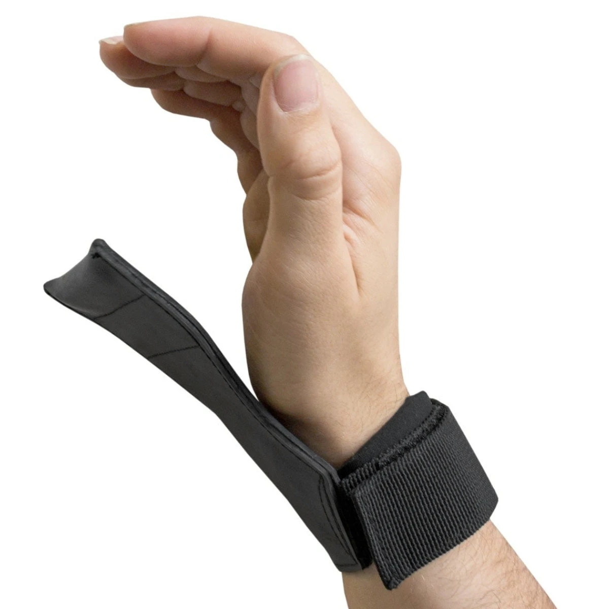 Mit Klettverschluss um das Handgelenk verschlossen, sind diese Gummi-Griffhilfen für Handgelenke mit einem Umfang von minimal 18cm bis maximal 26cm geeignet.